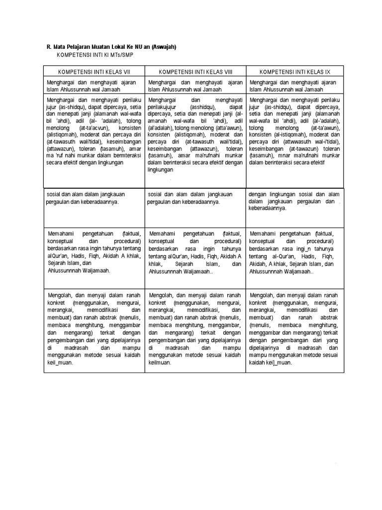 Ki Kd Aswaja Mts Kurikulum 2013 Doc / Kurikulum Nasional Aswaja Dan Ke Nu An Smp Mts : Kurikulum 2013 mulok bahasa jawa smp/smplb/mts.. Inilah ki dan kd bahasa inggris sd kurikulum 2013. Kami madrasah january 09, 2019. Ki dan kd sd mi kurikulum 2013 edisi revisi 2017 2018 ini dapat dijadikan sebagai pedoman dalam penyusunan perangkat pembelajaran. Download ki dan kd smp mts kurikulum 2013 edisi revisi 2017 2018 pada link di bawah ini. Melengkapi perangkat pembelajaran ipa kelas 8 jenjang smp/mts, pada postingan ini saya akan berbagi pemetaan ki dan kd ipa kelas 8 kurikulum 2013 revisi 2019 semester 1 dan semester 2.